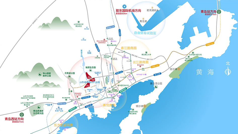 青島與西海岸的重要橋梁,連接市區(qū)快速路、青蘭鐵路,交通便利,便捷出行。